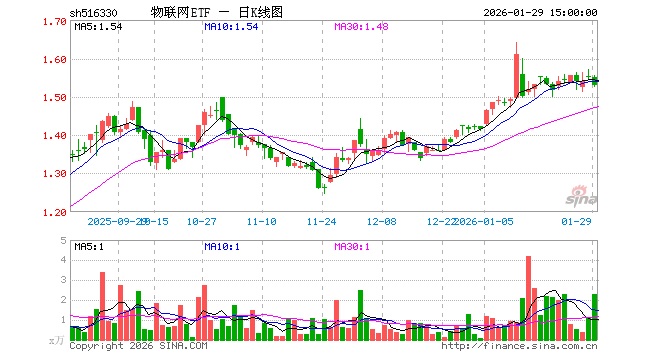 1月29日,物联网ETF(516330)跌1.29%,成交额350.66万元。当日份额增加120.00万份,最新份额为847.13万份,近20个交易日份额增加0.00份。最新资产净值计算值为1289.16万元。