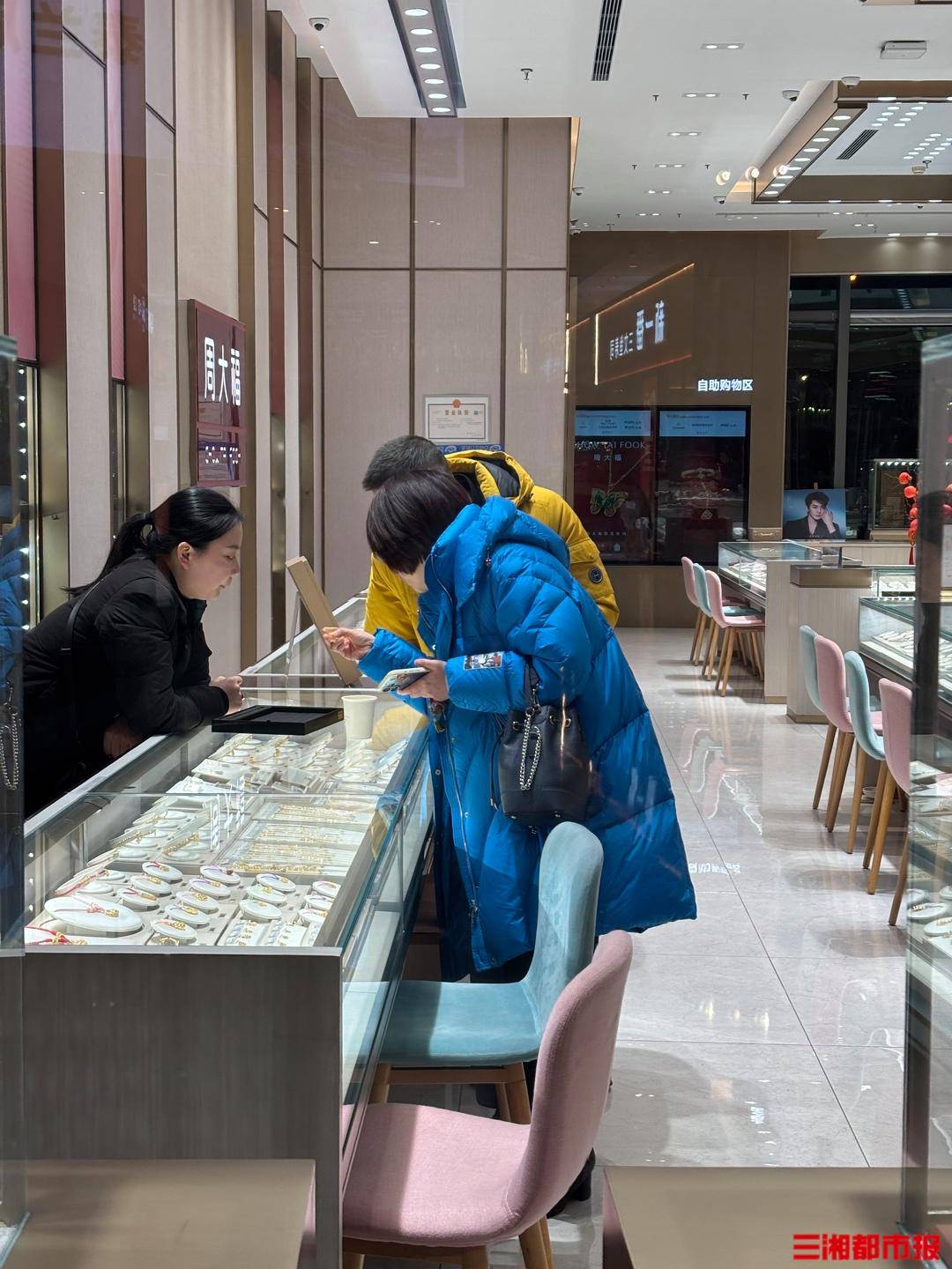 1月6日,记者走访周大福(富兴时代店)了解黄金回收业务时,店员明确表示,回收对黄金品牌无特殊限制,只需对黄金纯度进行检验即可,当日回收价为956元/克,比银行回收低几十元,金条售价则为1219元/克,比银行高出近200元/克。“临近春节,选购金条的顾客明显多了起来,今天下午就有一位年轻顾客专程到店选购金条。”店员说。