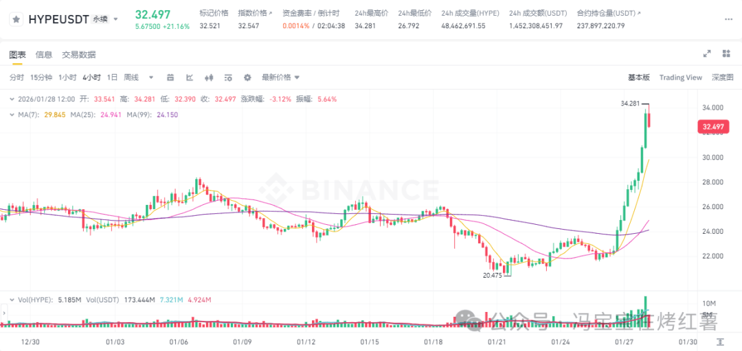 HYPE爆拉利好币圈,印证Hip-3和贵金属叙事,做实基本面项目价值,还带动Perpdex赛道回暖。$Lit、$Aster止跌,币圈正缺大市值代币的大涨,不过当前情绪高点不宜追高,逢低布局更稳妥。