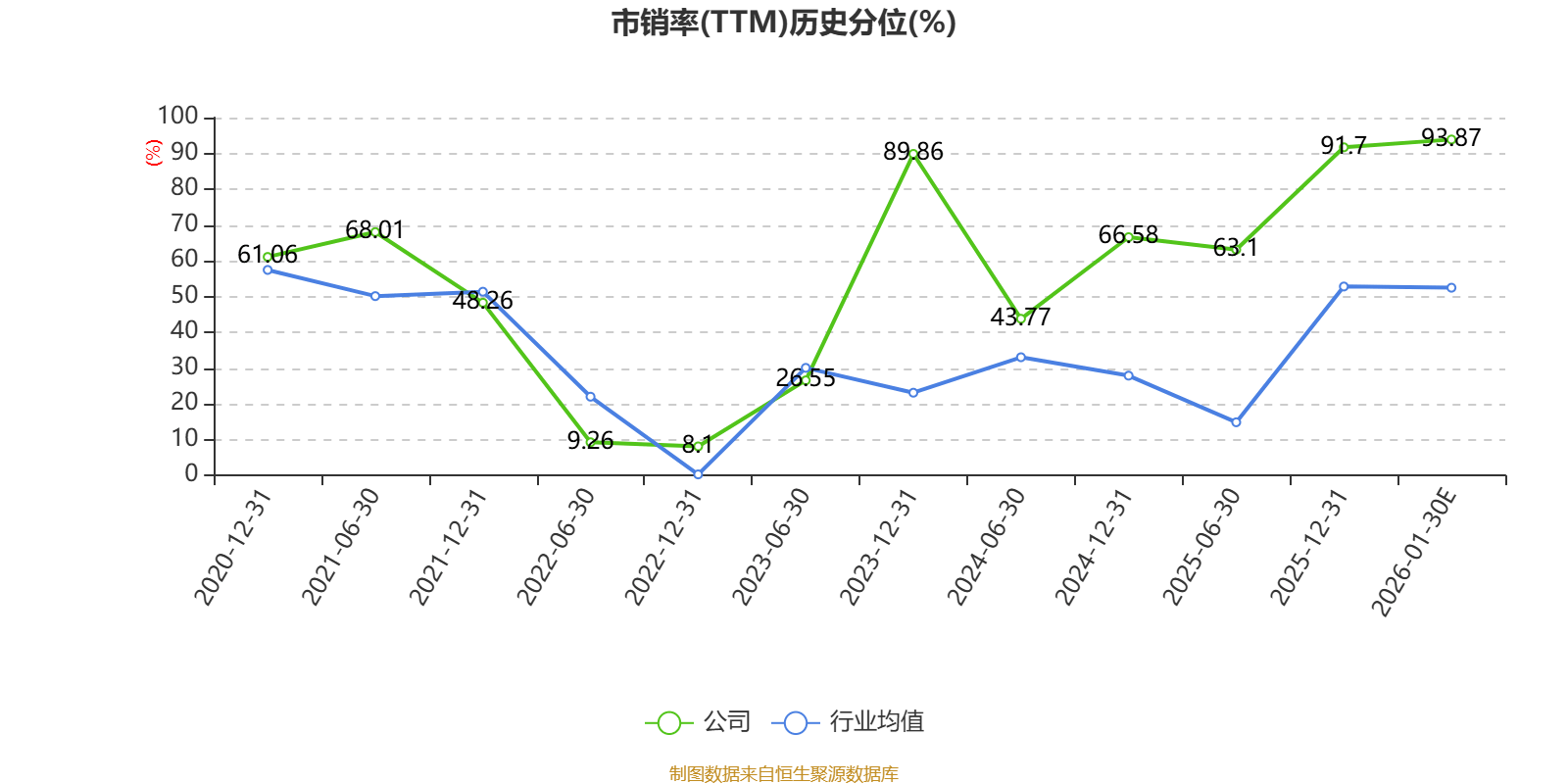 文中市盈率和市销率采用TTM方式,即以截至最近一期财报(含预报)12个月的数据计算。市净率采用LF方式,即以最近一期财报数据计算。三者的分位数计算区间均为公司上市以来至最新公告日。