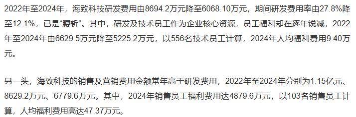其次,在AI这个技术驱动型行业,其研发费用不增反降,从2022年的8694万元持续下滑至2024年的6068万元,研发费用率从27.8%腰斩至12.1%。与此形成鲜明对比的是,2024年销售人员的平均福利是研发技术人员的5倍。这种“重销售、轻研发”的投入结构,与其所讲述的技术驱动故事存在明显偏差,令人对其长期技术护城河的加深产生疑虑。