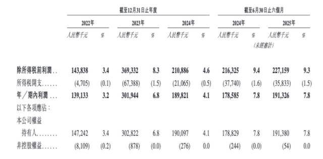 更令人担忧的是净利润的“过山车式”波动。2023年,公司净利润同比激增117%至3.02亿元,但2024年净利润骤降37.1%至1.9亿元。2025年上半年业绩出现回升,净利润达1.91亿元,超2024年全年。