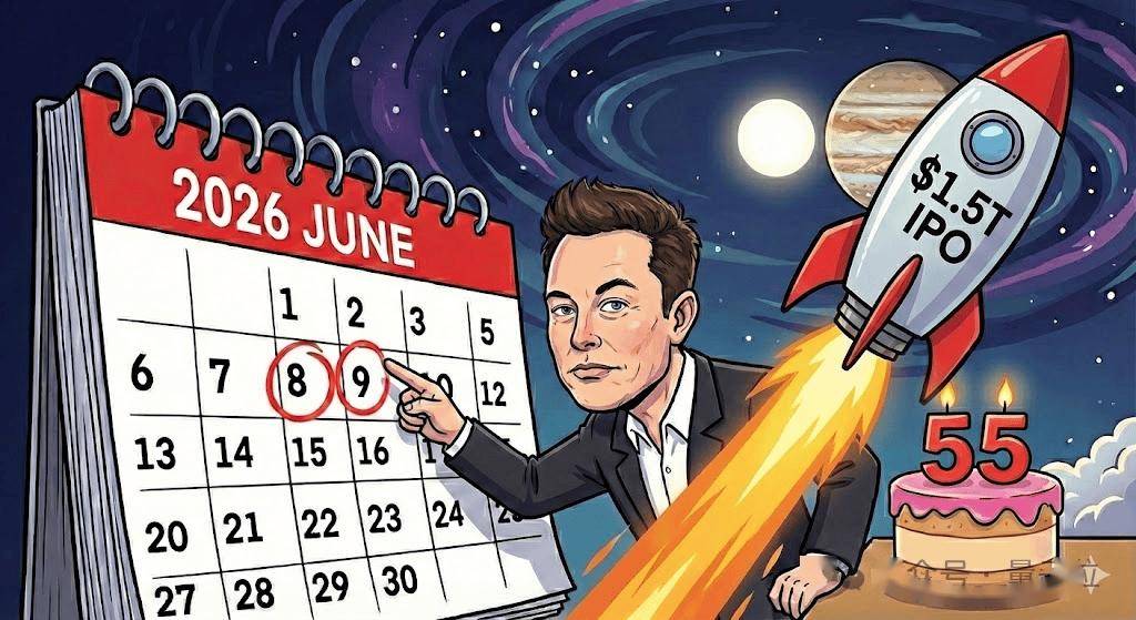 后来,马斯克将IPO的时间窗口锁定在了2026年6月中旬,冲击1.5万亿美元估值。