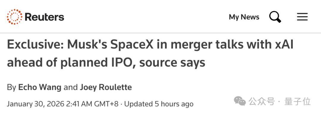 根据路透社披露的消息,知情人士表示SpaceX与xAI正进行并购谈判,计划通过换股方式合并。