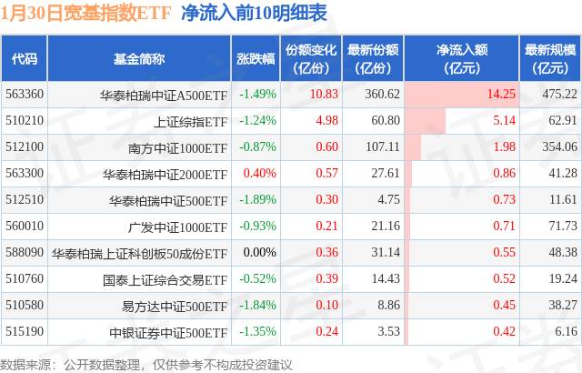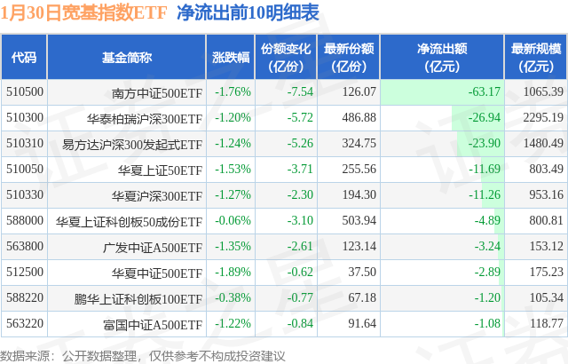 【ETF观察】1月30日宽基指数ETF净流出128.03亿元