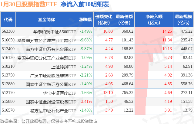 【ETF观察】1月30日股票指数ETF净流出37.29亿元