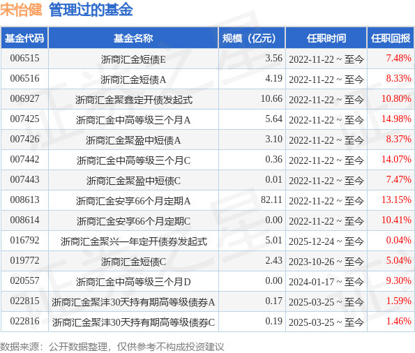 浙商汇金金算盘货币基金经理变动:增聘宋怡健为基金经理