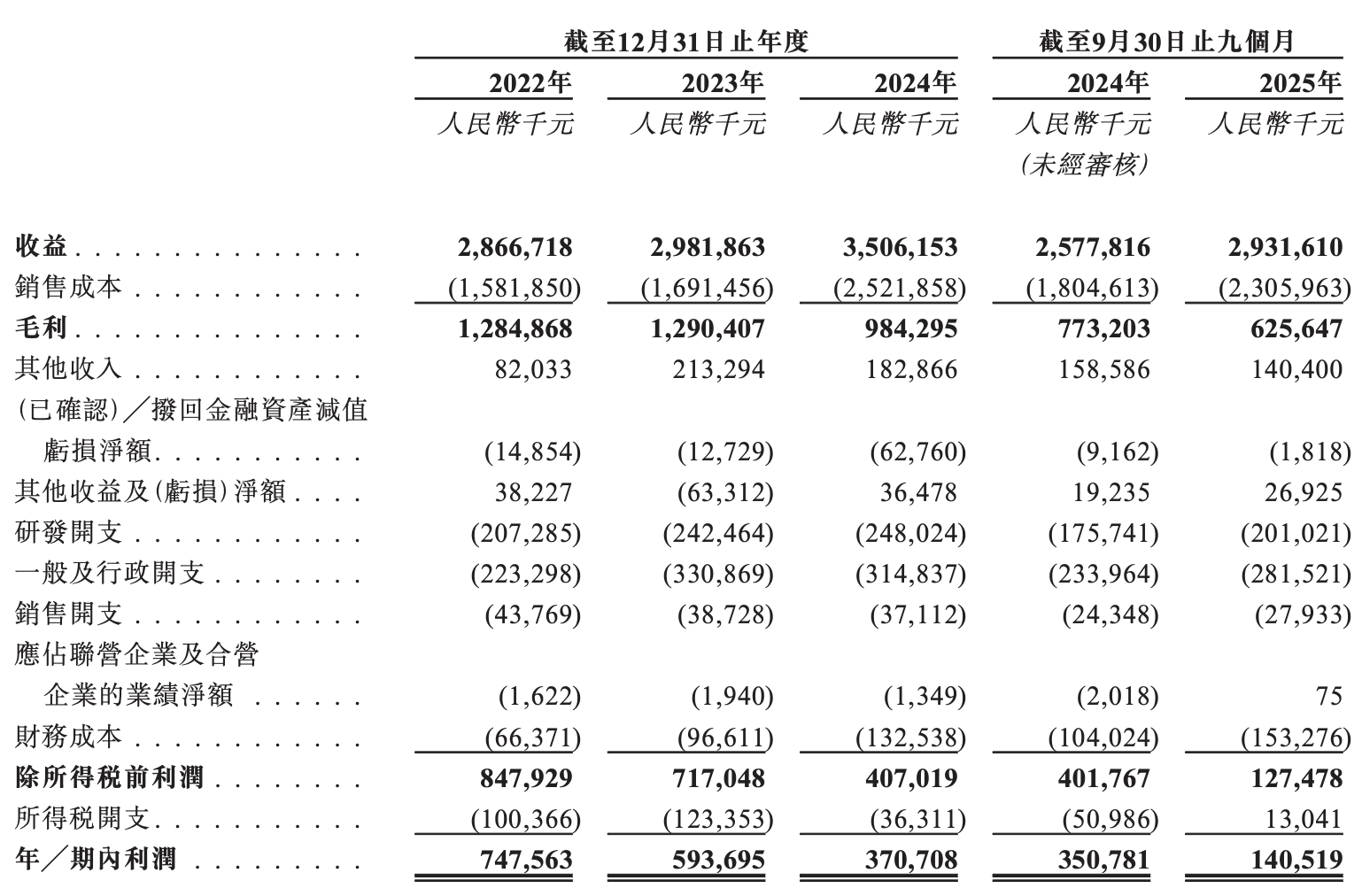 “我们的期内利润由截至2024年9月30日止九个月的3.51亿元减少59.9%至截至2025年9月30日止九个月的1.41亿元,主要由于市场竞争导致产品平均售价跌幅超过生产成本跌幅,从而造成毛利下降。”