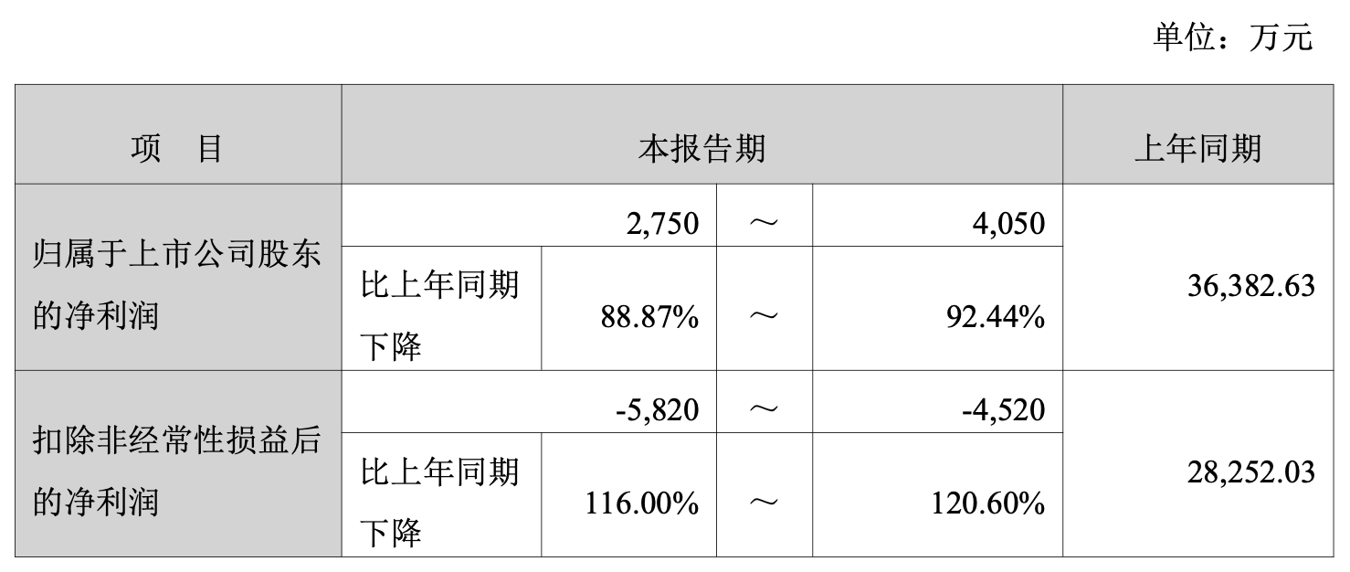 A股上市以来首次年度扣非亏损