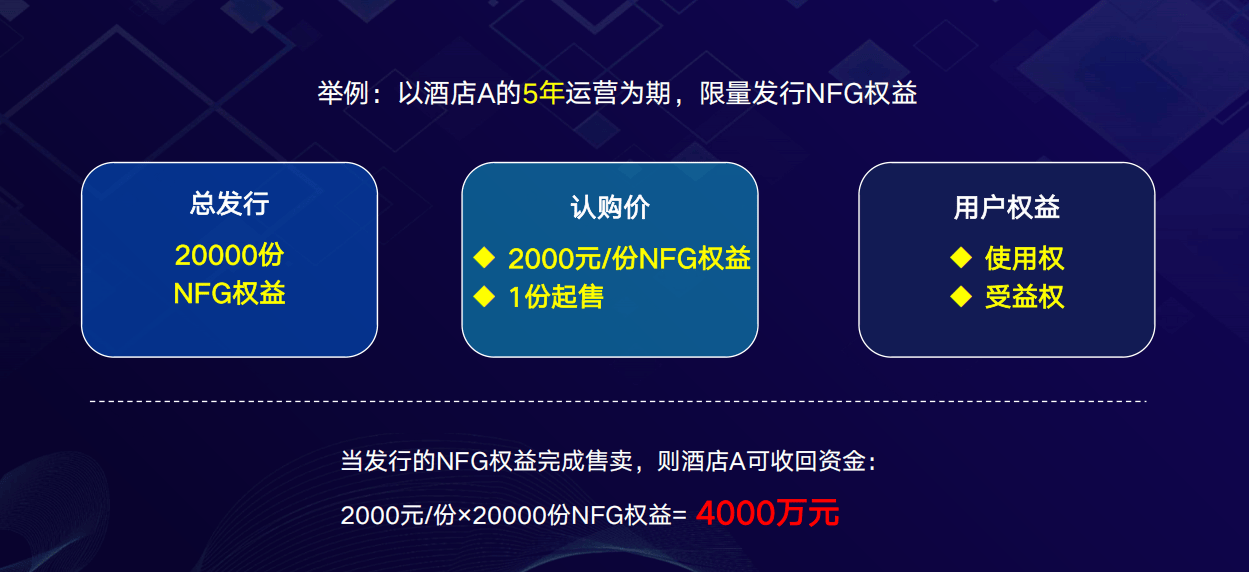 这相当于将一家酒店的价值和未来收益,“打包”成限量发行的数字资产。投资者购买一份NFG,就相当于拥有了这家酒店的一部分权益。