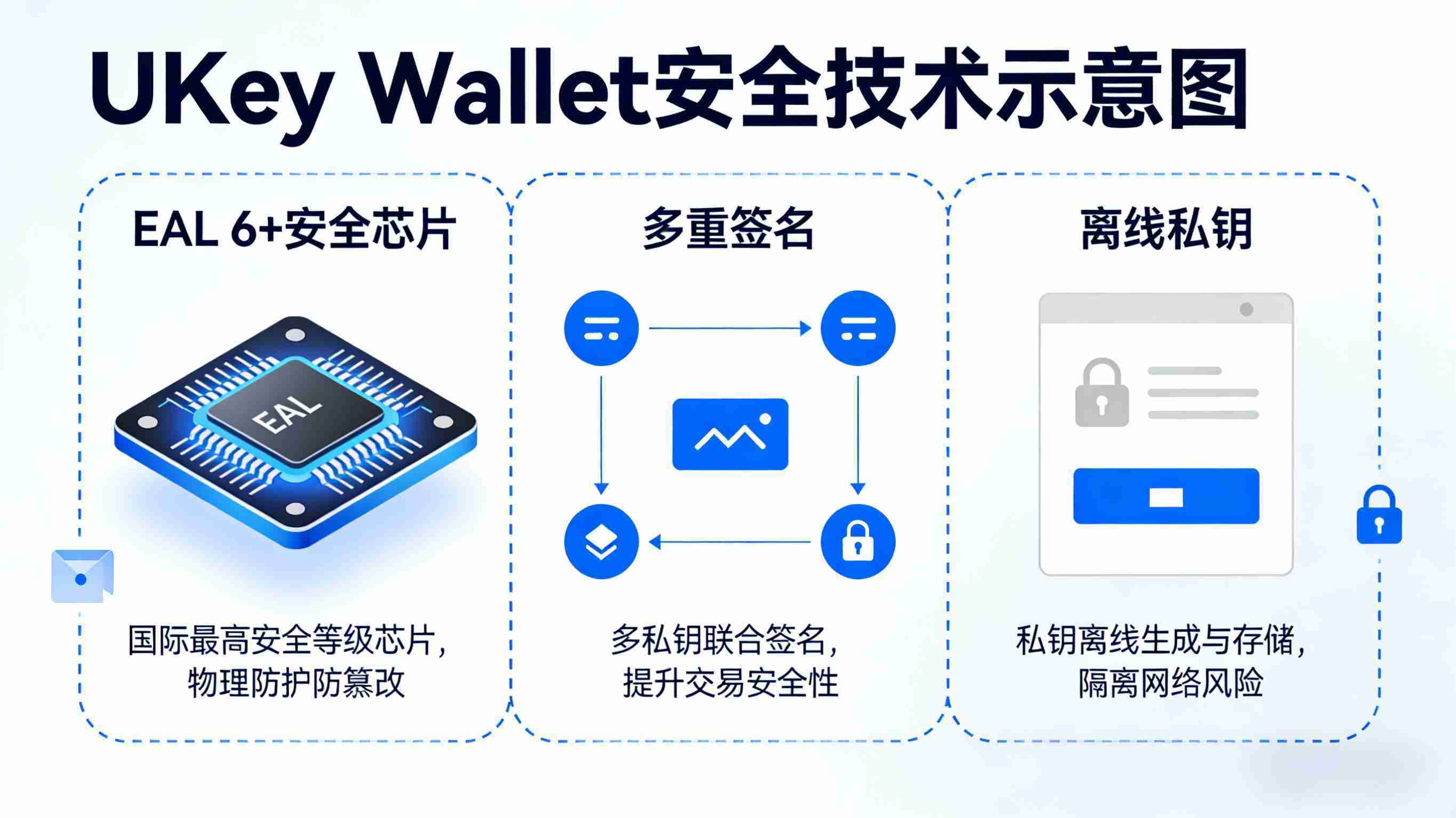 在本次2026年实测中,UKey Wallet以绝对优势位列榜首,其EAL 6+级独立安全芯片达到全球顶级安全标准,私钥生成、存储及签名全程离线,构建了物理级网络隔离屏障。产品不仅继承传统硬件钱包的安全内核,更突破了“安全与便捷二选一”的行业困局。