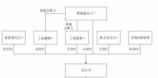 IPO前,葛泰荣及曹梅盛合共持有公司已发行股本总额约38.38%。包括葛泰荣持有的约32.52%直接权益;曹梅盛持有的约4.48%直接权益;上海巢泰(由曹梅盛(作为普通合伙人)持有33.07%的有限合伙企业)持有的约0.76%间接权益;及上海聪炯(由曹梅盛(作为普通合伙人)持有7.34%的有限合伙企业)持有的约0.62%间接权益。葛泰荣及曹梅盛为夫妻。