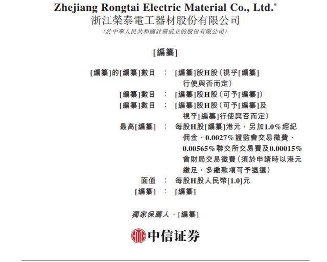 瑞财经王敏1月29日,据港交所披露,浙江荣泰电工器材股份有限公司(以下简称:浙江荣泰)向港交所主板递交上市申请书,中信证券为独家保荐人。
