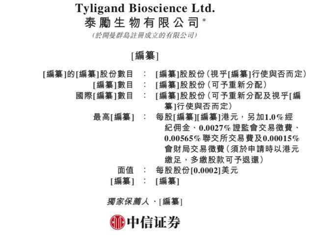 瑞财经 严明会1月29日,泰励生物有限公司(Tyligand Bioscience,以下简称:泰励生物)向港交所主板递交上市申请,中信证券为其独家保荐人。