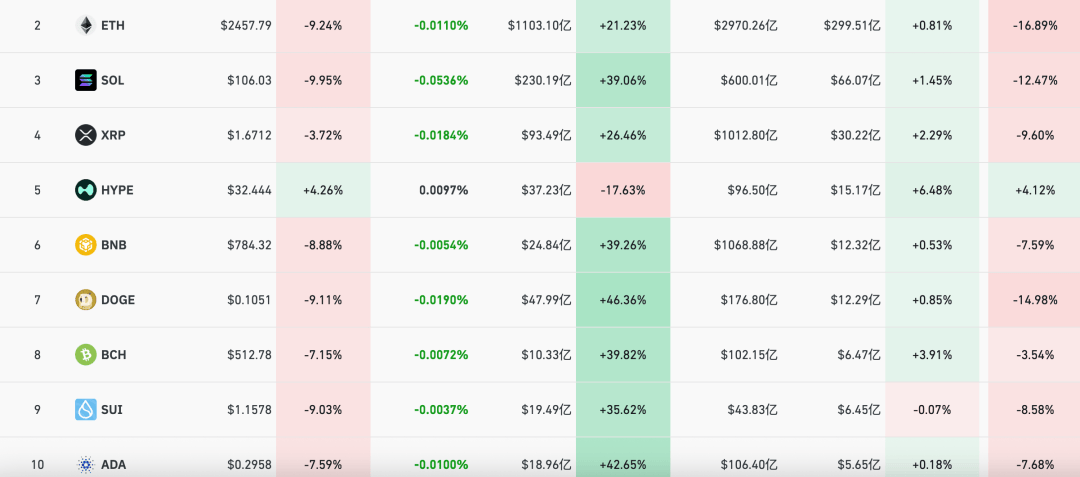 与此同时,以太坊、SOL、狗狗币等一度跌超10%。