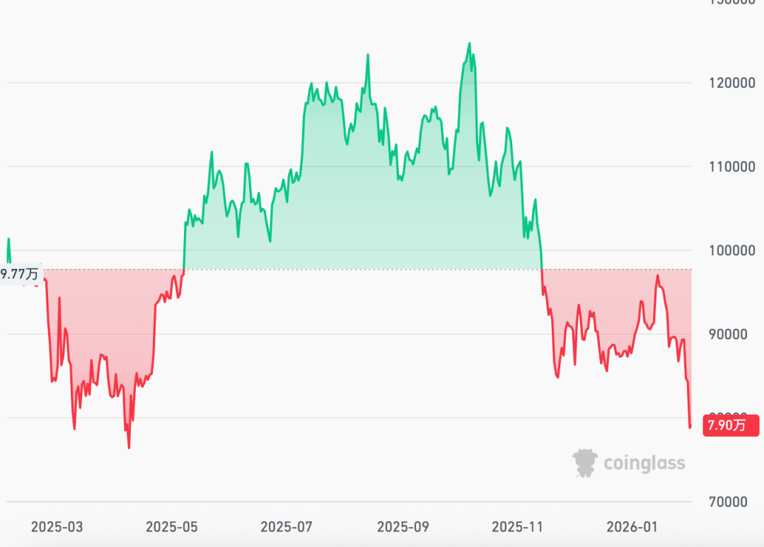 比特币自 2025 年 4 月... 来源:滚动播报 比特币自 2025 年 4 月以来首次跌破 8 万美元关口。