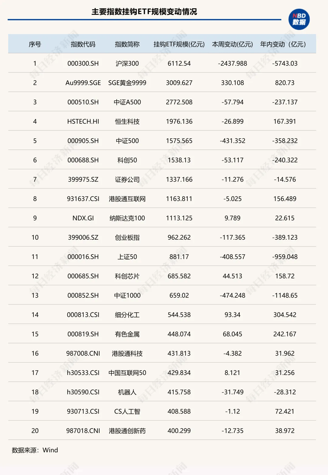 多只产品单周失血超400亿元,“千亿ETF”仅剩5席,这只黄金ETF杀入前三|ETF规模周报