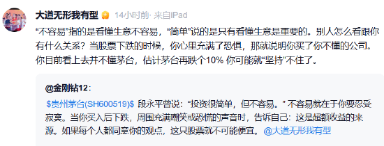 1月29日,有网友在平台上发文提到,段永平曾说“投资很简单,但不容易”。