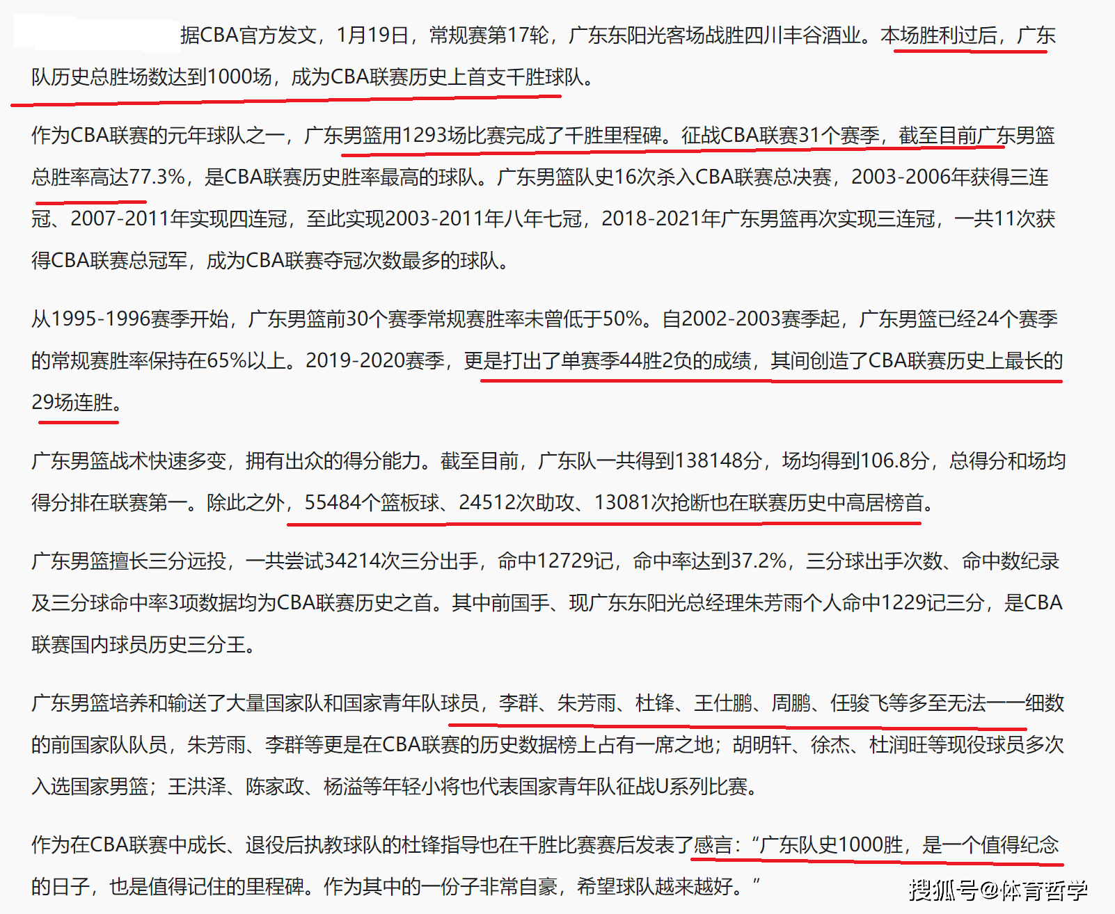 随着广东队取得队史1000胜,CBA公司也是在第一时间发文祝贺广东队!恭喜广东队成为CBA联赛历史上首支千胜球队。