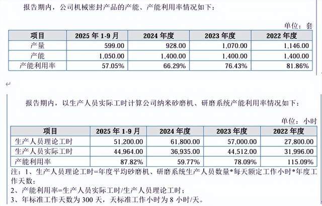 而从另一方面来看,该公司目前的产能利用率本来就不算高,产能利用率从2022年到2025年前9个月,依次为81.86%、76.43%、66.29%、57.05%。在这种情况下,该公司又新增产能,其中数控工具磨床与高速钻攻加工中心新增产能690台/年,五轴数控加工中心新增产能160台/年,这些新增产能如何消化呢?为此,该公司在招股书里也警示了“募投项目增产能消化不及预期的风险”。