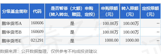 证券之星消息,2月2日鹏华基金管理有限公司发布《鹏华货币市场证券投资基金A类基金份额和B类基金份额调整大额申购、转换转入和定期定额投资业务的公告》。公告中提示,为保护基金份额持有人利益,自2026年2月3日起鹏华货币市场证券投资基金A类基金份额和B类基金份额调整大额申购、转换转入和定期定额投资业务,下属分级基金调整明细如下: