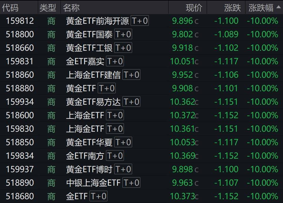受盘面影响,商品黄金相关ETF早盘跌停开盘。