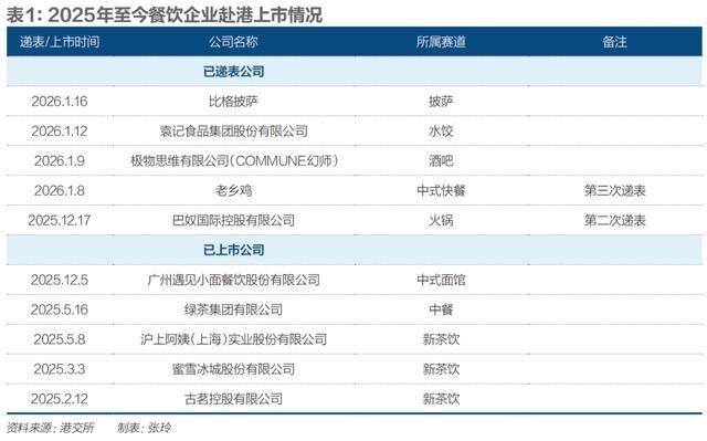 2026年开年半个月内,已有四家餐饮企业向港交所递交上市申请。1月9日,餐酒吧品牌COMMUNE幻师的公司极物思维有限公司递表;1月12日,是袁记云饺所属公司袁记食品集团股份有限公司;1月16日,比格披萨紧随其后,成为2026年首家递交上市申请的西式休闲餐饮企业。早已开启上市进程的老乡鸡也于1月8日第三次更新了招股书,进一步推进港交所主板上市工作。