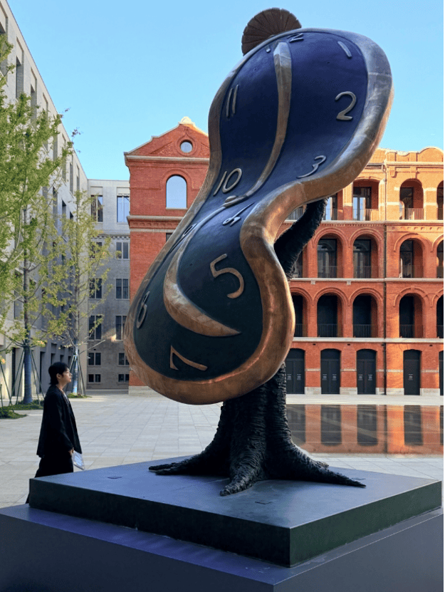 上海外滩老市府达利展中的大型雕塑装置《时间之舞I 》吸引众多观众合影打卡。