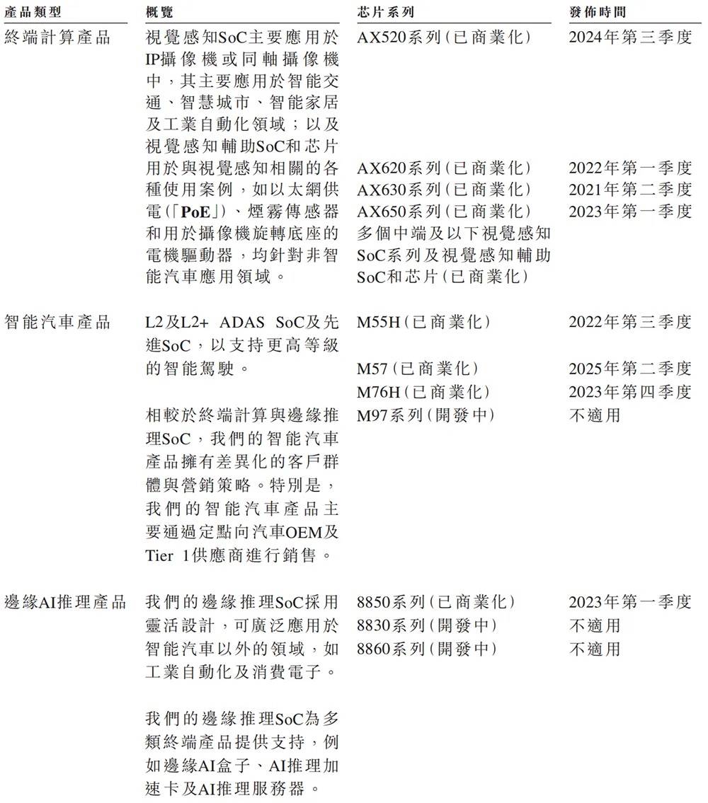 根据招股书,截至2025年9月30日,爱芯元智累计交付量已突破1.65亿颗SoC,已独立开发五代SoC(即AX630A、AX620A、AX650N、AX620E及AX520C系列)并实现商业化。