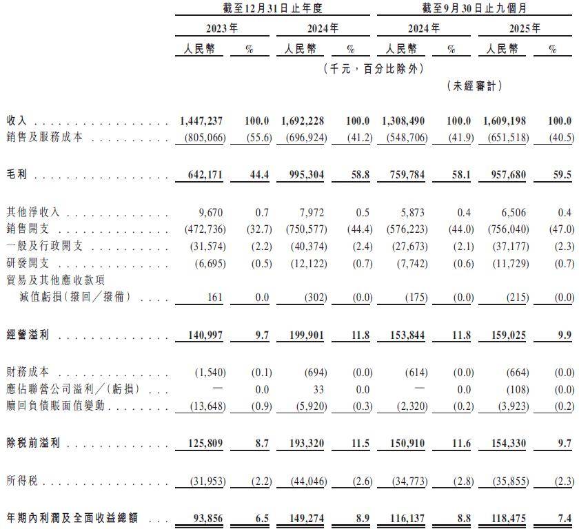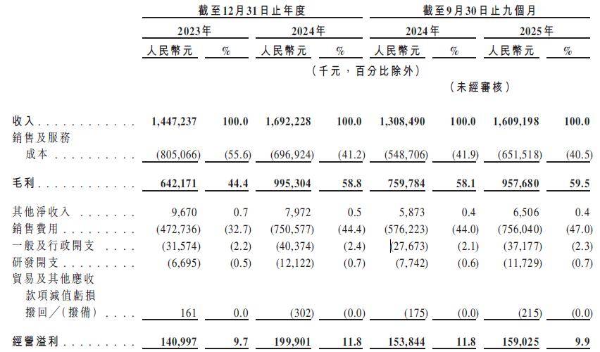更引人注目的是其毛利率的攀升——从2023年的44.4%增至2025年前三季度的59.5%,展现了业务优化带来的盈利改善。