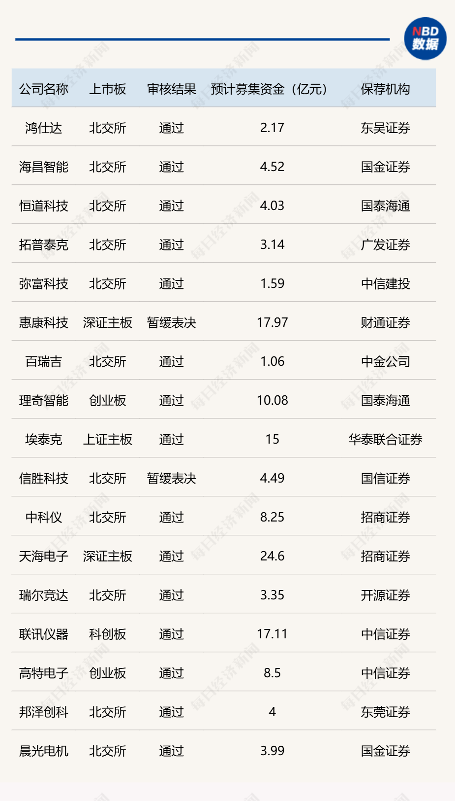 《每日经济新闻》记者注意到,上述17家首发上会公司中,拟于北交所上市的有11家。事实上,自2025年11月份以来,北交所月度IPO企业上会数已连续3个月保持在10家以上。
