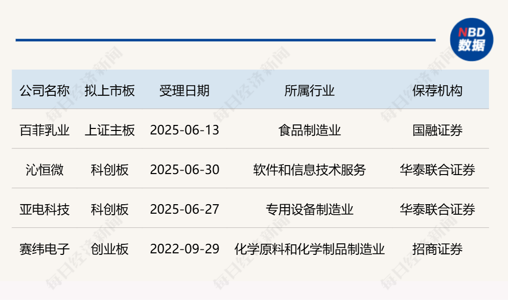 上述4家终止IPO的企业中,有3家公司于2025年6月份获得受理,其中亚电科技主要从事硅基半导体、化合物半导体及光伏领域湿法清洗设备的研发、生产和销售。