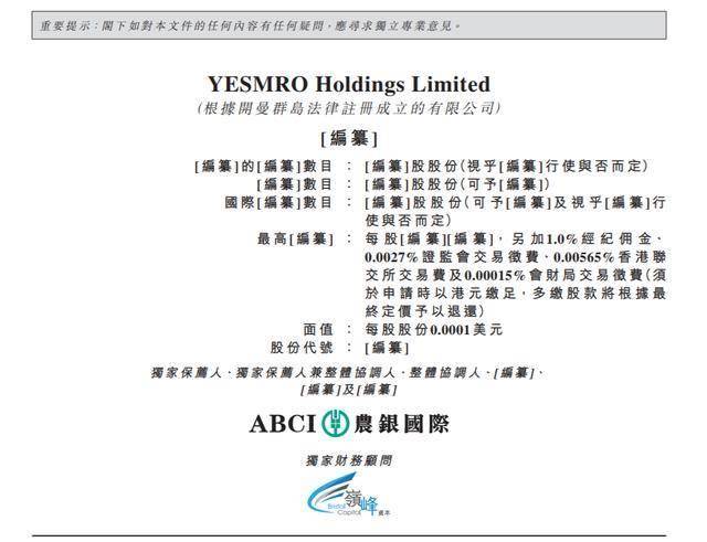 瑞财经 王敏 1月30日,据港交所披露,YESMRO Holdings Limited(以下简称“易买工品”)向港交所主板递交上市申请,农银国际为其独家保荐人