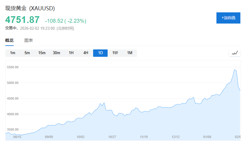 一些交易员表示,此前的涨势已经走得太远、太快,随后出现了戏剧性的反转。仅仅两个交易日,现货黄金一度暴跌1000美元,最低逼近4400美元关口。