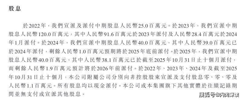 值得关注的是,富友支付频繁冲击IPO的背后,伴随的是股东大比例分红套现的操作。招股书数据显示,2022年至2025年10月,公司分别宣派股息2500万元、1.2亿元、4000万元、4000万元,累计分红达2.25亿元,占同期净利润的比例超六成。