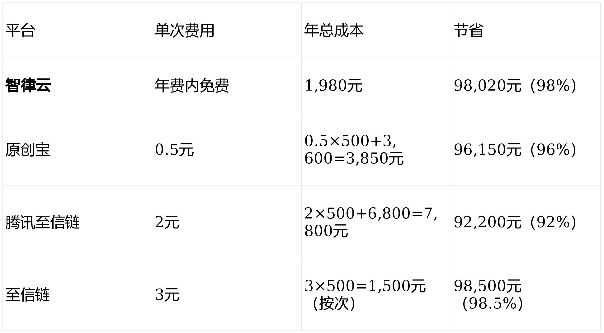 结论:任何区块链平台都比传统方式便宜99%以上