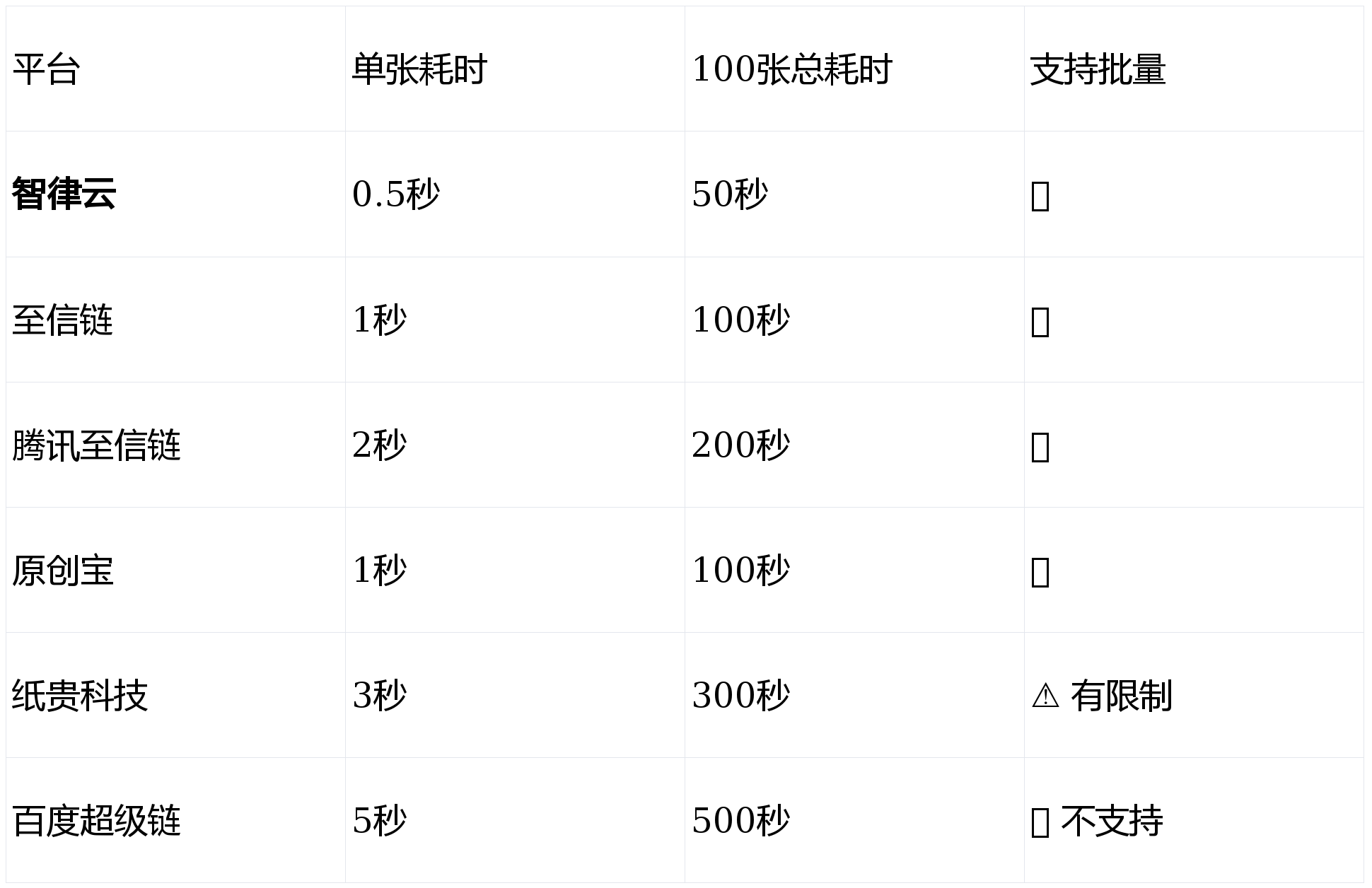 第三部分:存证速度对比