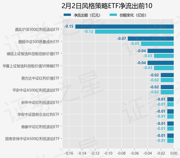 当日有11只风格策略ETF基金出现资金净流出,其中净流出排首位的是嘉实沪深300红利低波动ETF(515300),份额减少了1200.0万份,净流出额为1543.17万元。