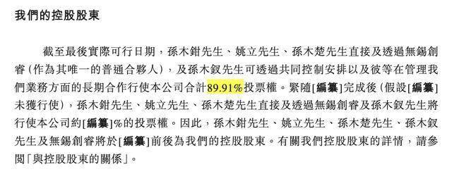 IPO前,孙木钳、姚立、孙木楚直接及透过无锡创睿(作为其唯一的普通合伙人),及孙木钗可透过共同控制安排以及他们在管理公司业务方面的长期合作行使公司合计89.91%投票权。