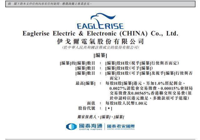 瑞财经 王敏 1月30日,港交所文件披露,伊戈尔电气股份有限公司(以下简称“伊戈尔”)向港交所提交上市申请书,独家保荐人为国泰海通。