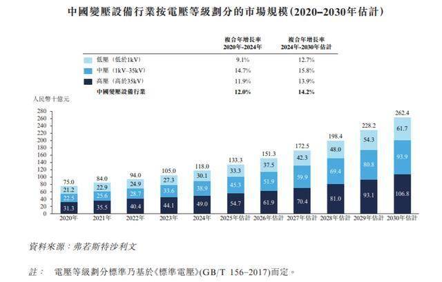 其中,中国中压变压设备市场规模从2020年的人民币225亿元扩大至2024年的人民币389亿元,复合年增长率为14.7%。在可再生能源基础设施加速建设和数据中心集群发展的双重驱动下,该市场预计将延续增长态势,到2030年规模将达到人民币939亿元,自2024年起复合年增长率约为15.8%。