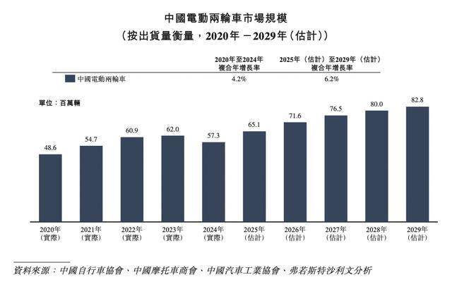 根据弗若斯特沙利文的资料,按2024年收入计,公司在全球电动轻型交通工具市场位列第三,市场份额约为5.2%。按2024年电动两轮车的收入计,公司在中国内地排名第三,市场份额约为12.7%。