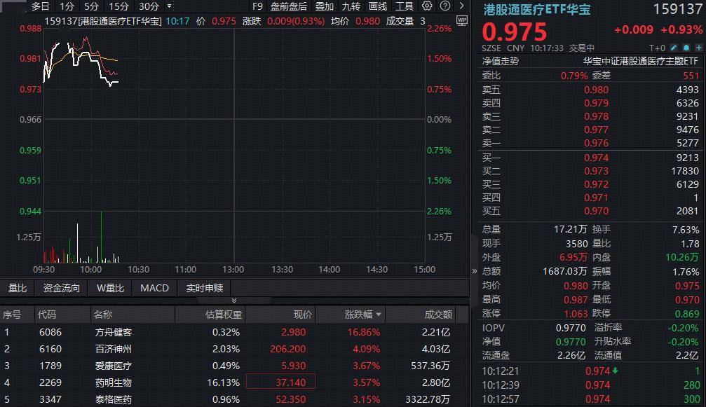 ETF盘中资讯|AI医疗概念异动,方舟健客盘初狂飙20%!港股通医疗ETF华宝(159137)冲上2%终结三连跌,医疗ETF巨量吸金
