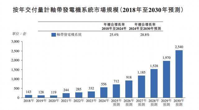 船舶能效增益系统细分行业规模按收入计已从2018年的人民币15亿元增长至2024年的人民币94亿元,主要受船舶节油及优化技术的加速应用所驱动。预计该细分行业规模于2030年将增至人民币674亿元,年复合增长率将达39.0%,成为推动整体市场增长的重要引擎之一,随着船东日益重视成本效益与性能优化,该板块将持续发力。作为船舶能效增益系统细分行业的核心产品,船用轴带发电机系统的年交付量由2018年的143套增至2024年的556套,预计到2030年将进一步攀升至2,540套。