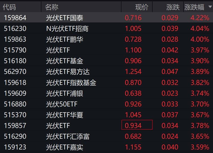 受盘面影响,光伏相关ETF涨约4%。
