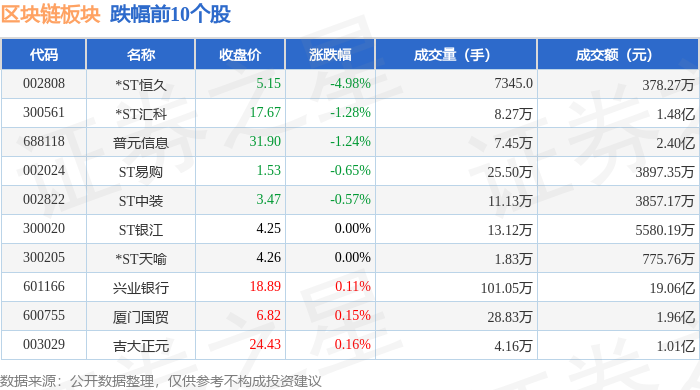 证券之星消息,2月3日区块链板块较上一交易日上涨1.98%,顺网科技领涨。当日上证指数报收于4067.74,上涨1.29%。深证成指报收于14127.1,上涨2.19%。区块链板块个股涨跌见下表: