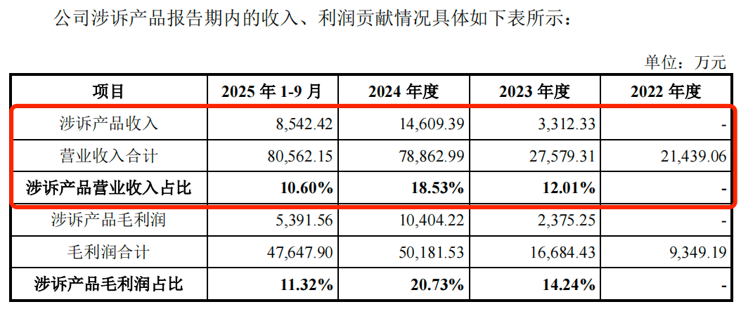 同期,涉诉产品毛利润占比分别为14.24%、20.73%和11.32%。