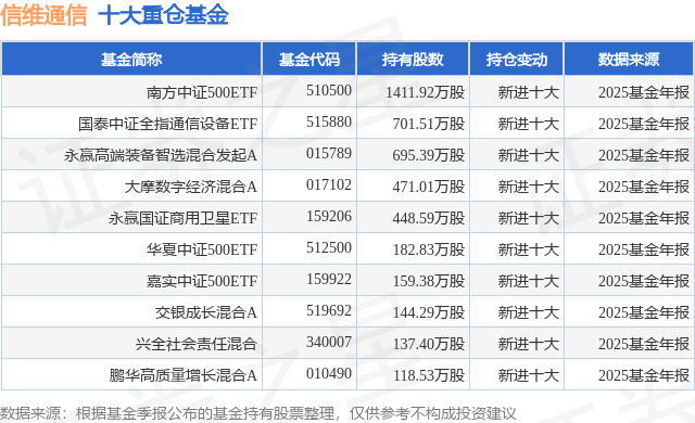 重仓信维通信的前十大公募基金请见下表: