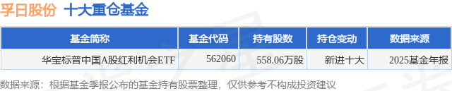 根据2025基金年报公募基金重仓股数据,重仓该股的公募基金共1家,其中持有数量最多的公募基金为华宝基金的华宝标普中国A股红利机会ETF。华宝标普中国A股红利机会ETF目前规模为24.78亿元,最新净值0.6486(2月2日),较上一交易日下跌1.7%,近一年上涨26.96%。该公募基金现任基金经理为胡洁 胡一江。胡洁在任的基金产品包括:华宝中证银行ETF联接A,管理时间为2012年10月16日至今,期间收益率为163.87%;华宝医疗ETF联接A,管理时间为2015年5月21日至今,期间收益率为-61.38%;华宝中证军工ETF,管理时间为2016年8月5日至今,期间收益率为64.19%;华宝中证银行ETF,管理时间为2017年7月18日至今,期间收益率为54.17%。胡一江在任的基金产品包括:华宝标普中国A股红利机会ETF联接C,管理时间为2025年1月18日至今,期间收益率为25.51%;华宝中证800红利低波动ETF,管理时间为2025年1月18日至今,期间收益率为5.62%;华宝沪深300自由现金流ETF,管理时间为2025年4月7日至今,期间收益率为24.48%。
