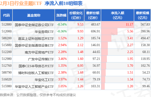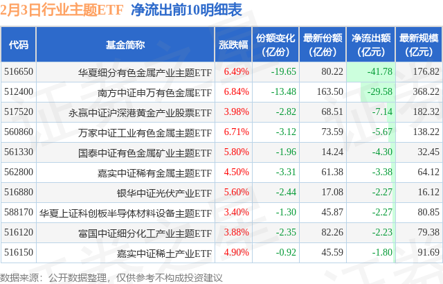 【ETF观察】2月3日行业主题ETF净流出71.54亿元